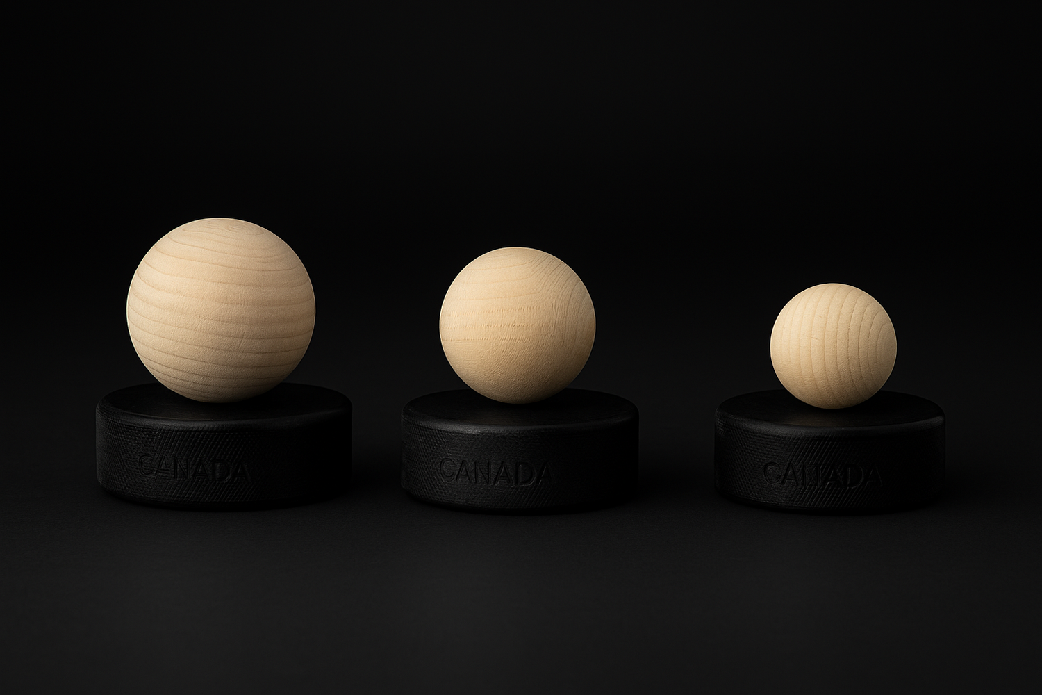 Medinių ledo ritulio valdymo treniruočių kamuoliukų rinkinys. Dydžiai: 4,5,6.