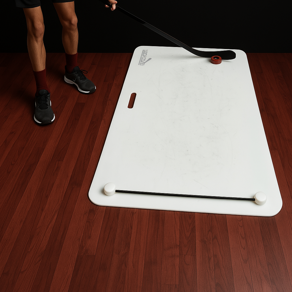 Ši aukštos kokybės ledo ritulio treniruočių plokštė yra puikus sprendimas tiek pradedantiesiems, tiek pažengusiems žaidėjams. Specialus itin slidus paviršius tikroviškai atkuria ledo savybes, todėl gali treniruotis naudodamas tikrą ledo ritulį arba specialius lauko ritulius. Integruotas pasuoklis leidžia lavinti perdavimo tikslumą, reakciją ir ritulio kontrolę, taip perkeliant tavo žaidimą į aukštesnį lygį.